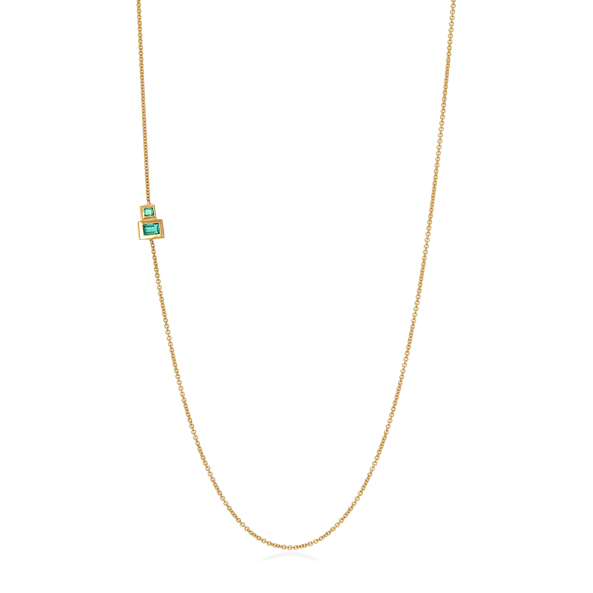 A fine 18 k gold chain set with squared Emeralds subtle modern, and full of meaning.